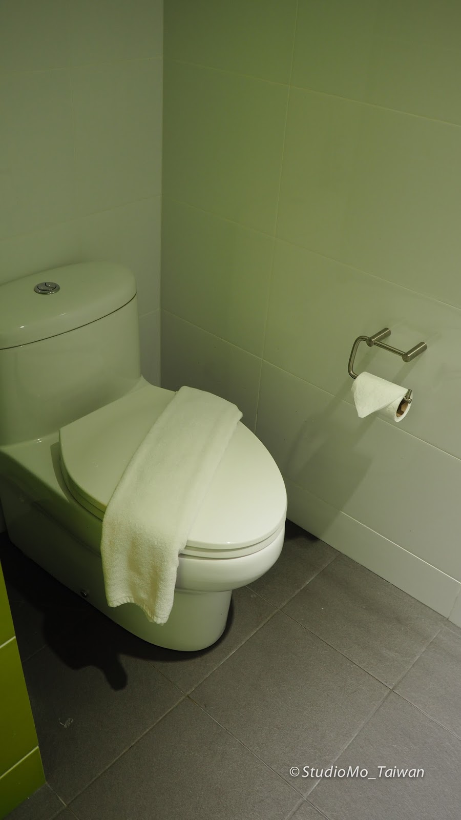 浴室安排很有趣,是透過上面滑門作為隔間,所以要上廁所就向左滑,要洗澡就像右滑!