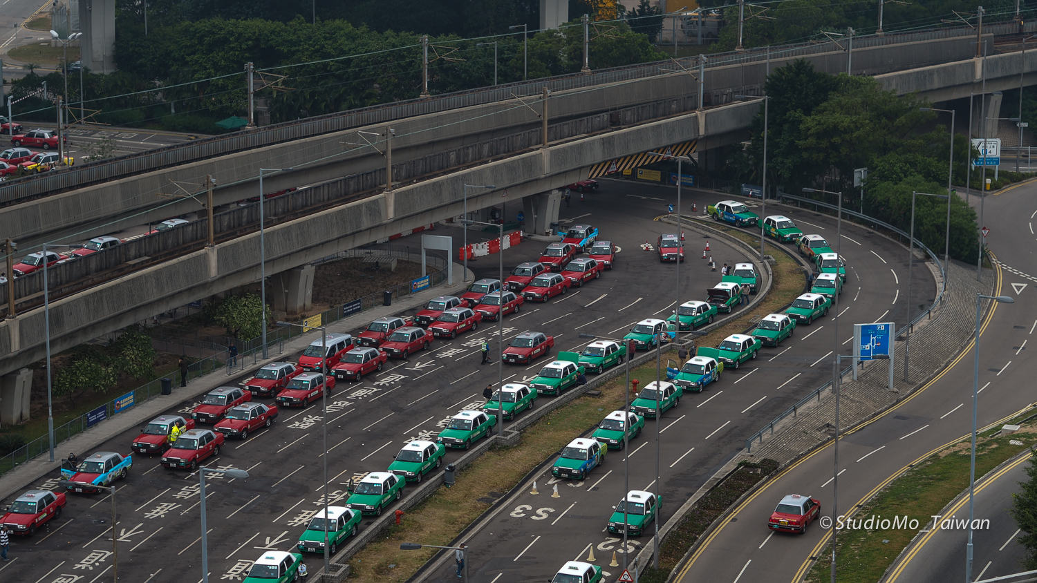 | 從HKG T2往機場旅館方向,可以看到一堆的士 |