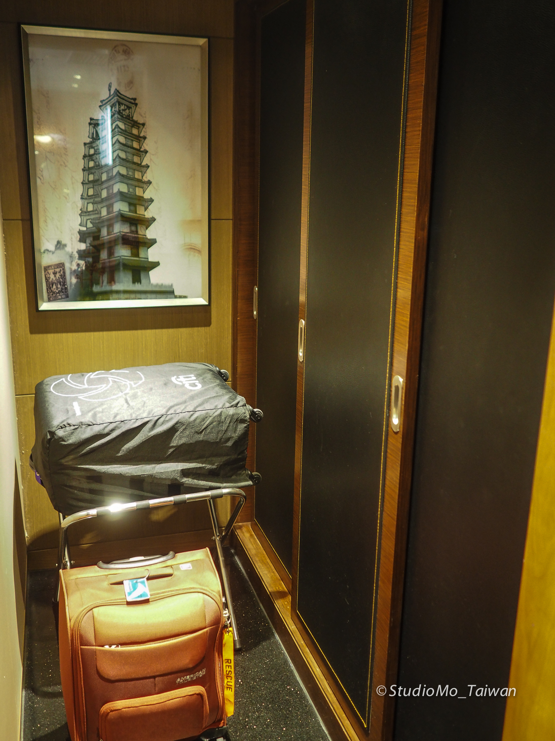| 入口的行李架和衣櫥,後面的圖片是鄭州二七紀念塔 |