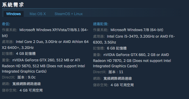 | 《都市:天際線 - Cities: Skylines》運行要求 |
