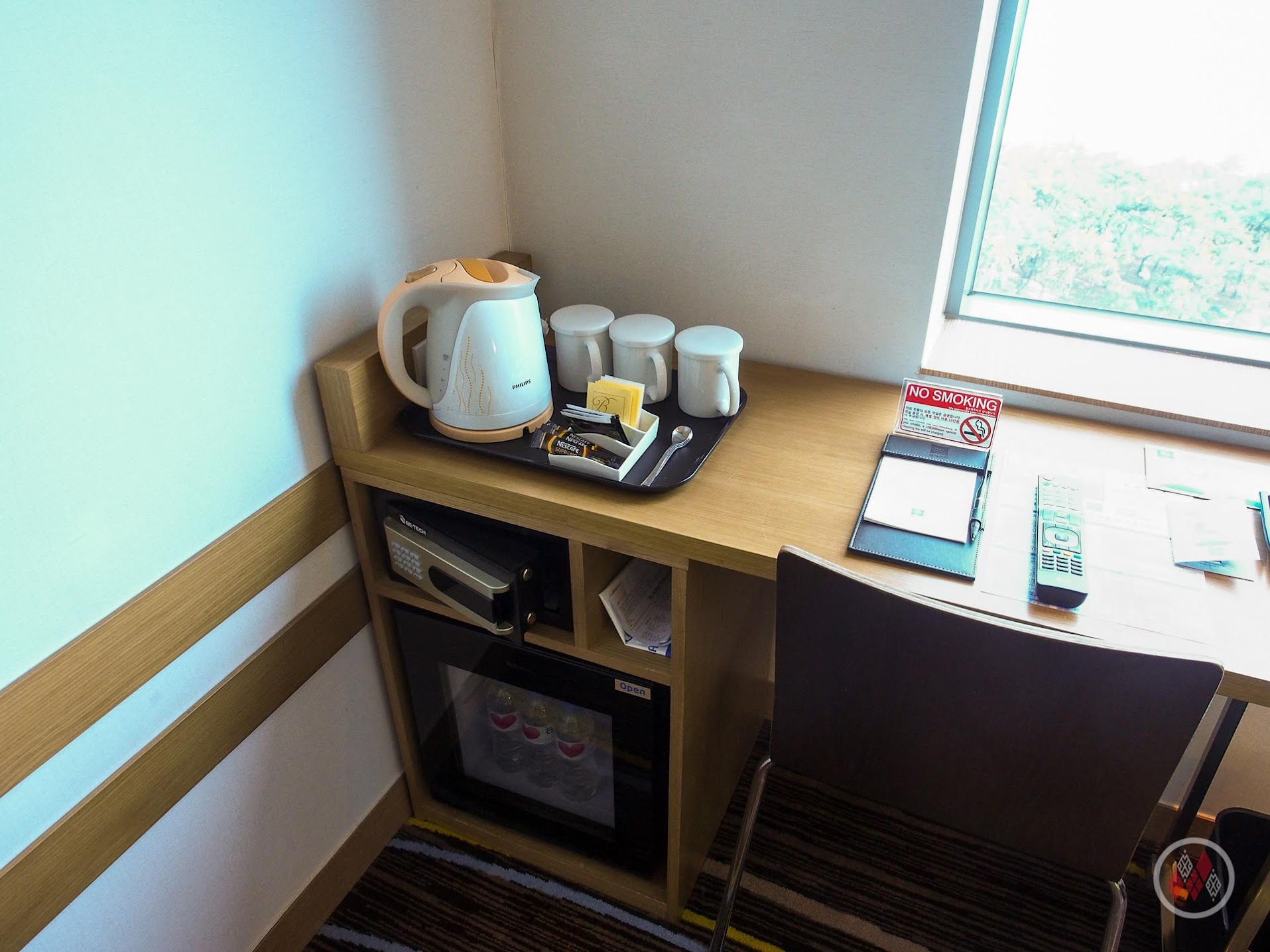 這次旅行筆者帶著兩老,所以在房型選擇上採用三人房,原本面向城景的房間,飯店也升等到海景房,正對著釜山海水浴場和威斯汀朝鮮酒店,一晚含稅不到兩千元的飯店能有這樣的風景,真的感到超值。
