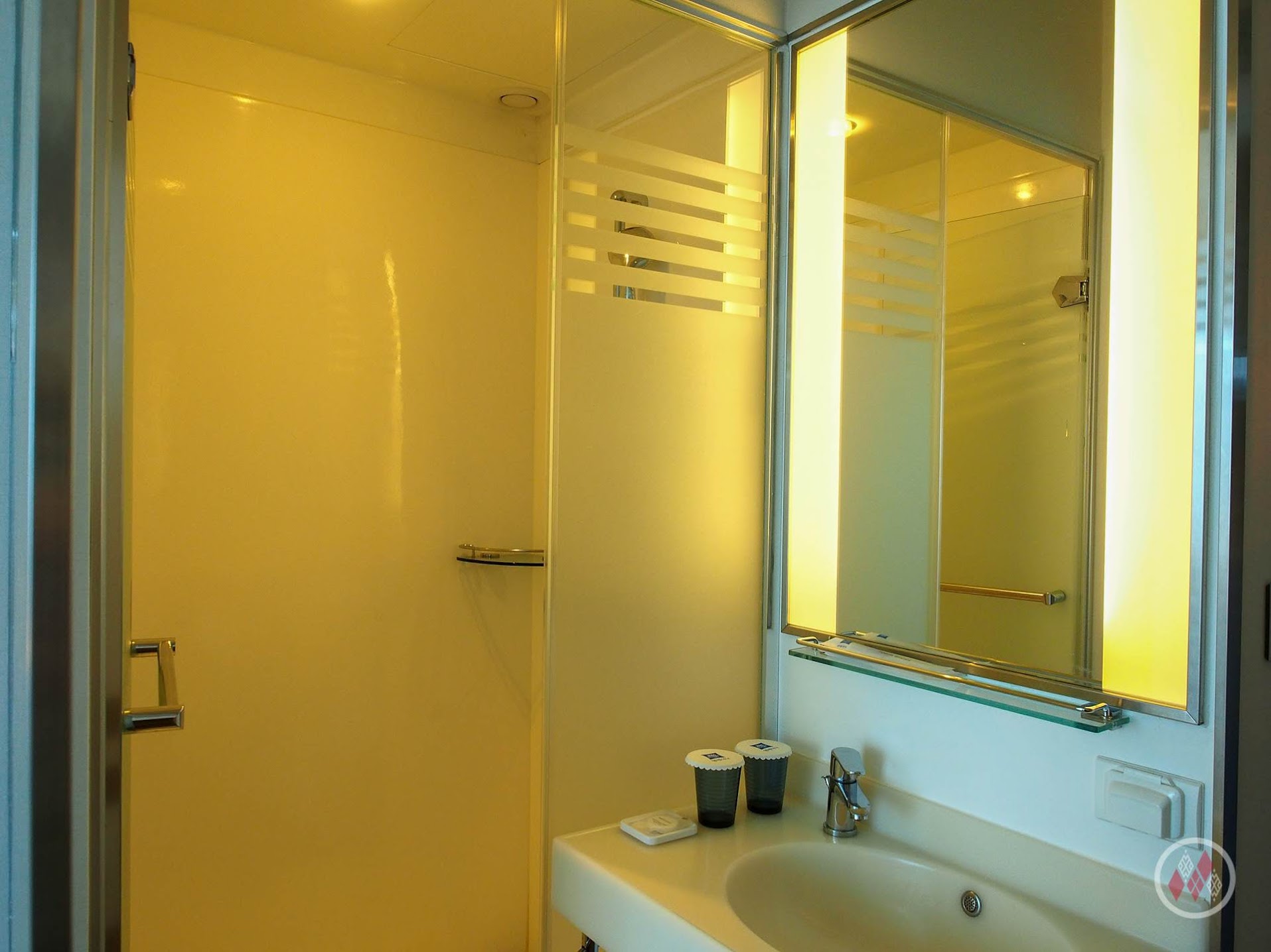 房間的浴廁就比較簡單,符合宜必思的標準,廁所是免治馬桶,這基本上是大使飯店(Ambassador Hotel,台灣也有人翻譯成國賓)的標配,所以沒有因為飯店等級較低有所差異。