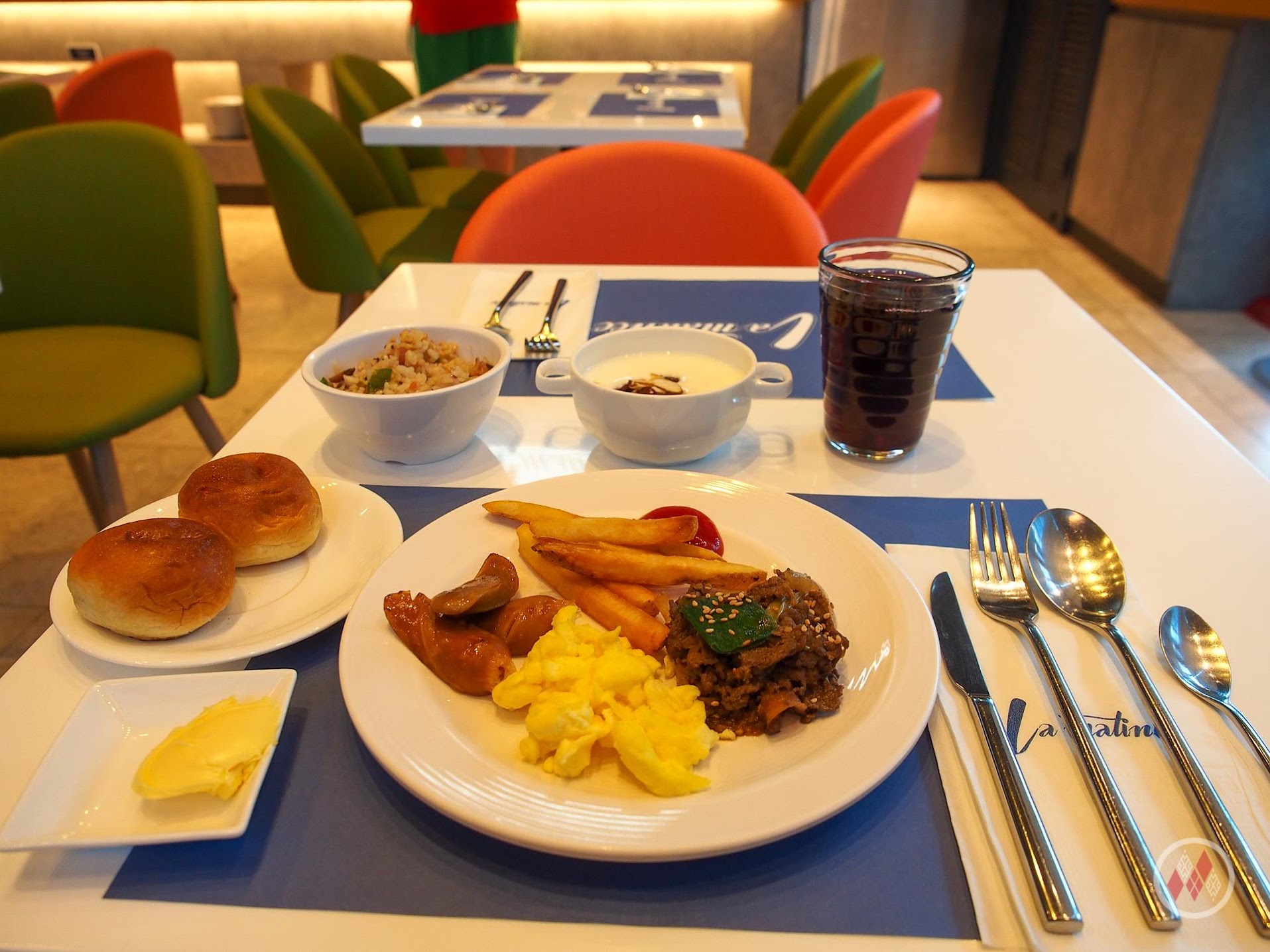 早餐是在一樓的 La Matinée,提供形式採自助式,基本上優格、水果、熱食、炒麵都有,還有小餐包非常的好吃,現烤熱熱的又有奶香,記得不要錯過。