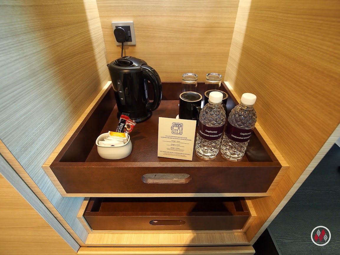 而房內的Mini Bar就維持商務飯店的水準,採用雀巢的茶品和即溶咖啡,但房間礦泉水有種源源不絕的感覺,這家下午會開夜床,每次都補四罐水以上,讓客人不會口渴啊。