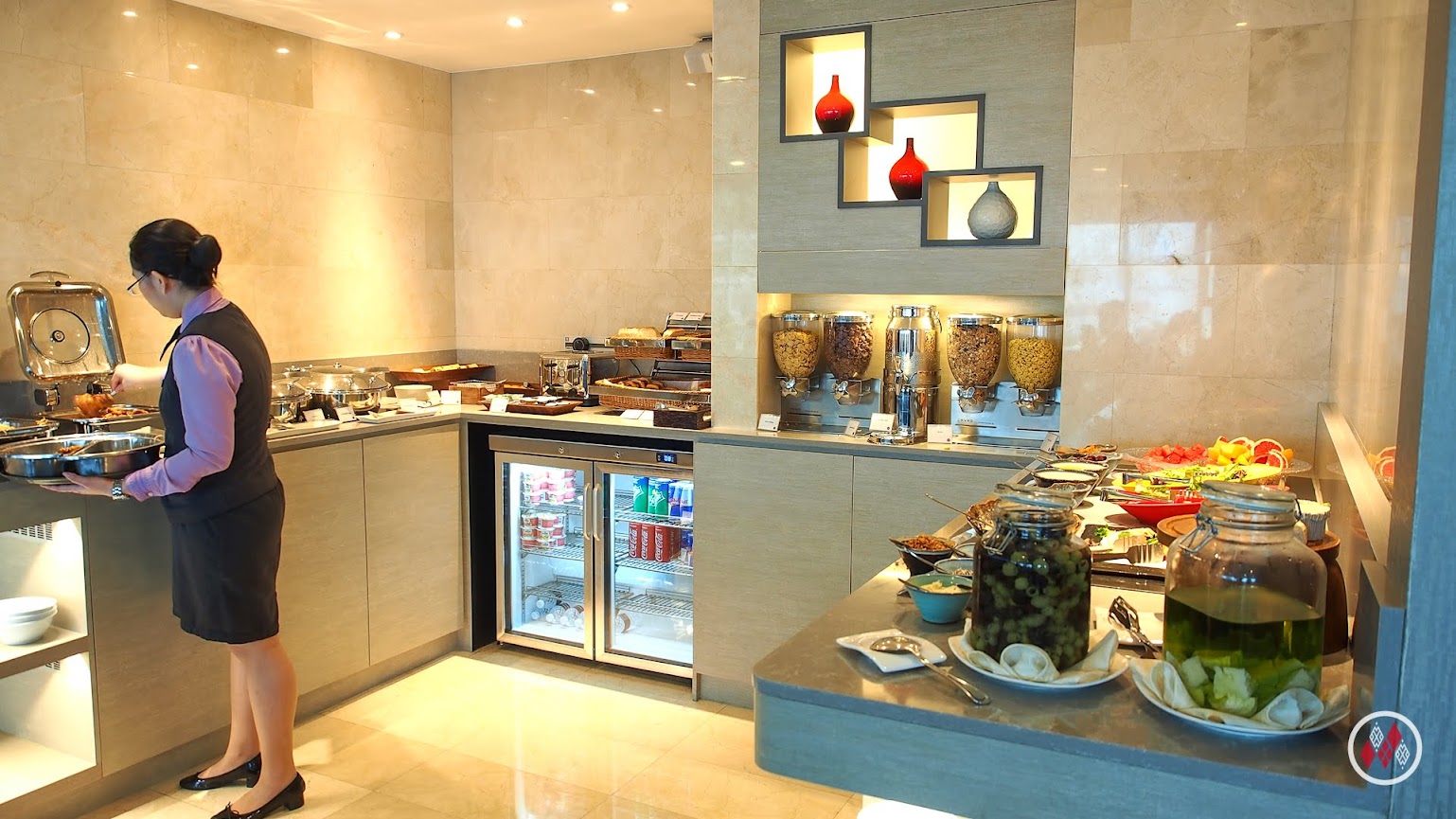 每次入住大多是午前或是午餐時間,這時候大廳會擠滿各家航空的組員,台灣的長榮也會入住這間飯店,而即便在櫃檯全滿的時候,仍會保留給會員的專屬報到空間。